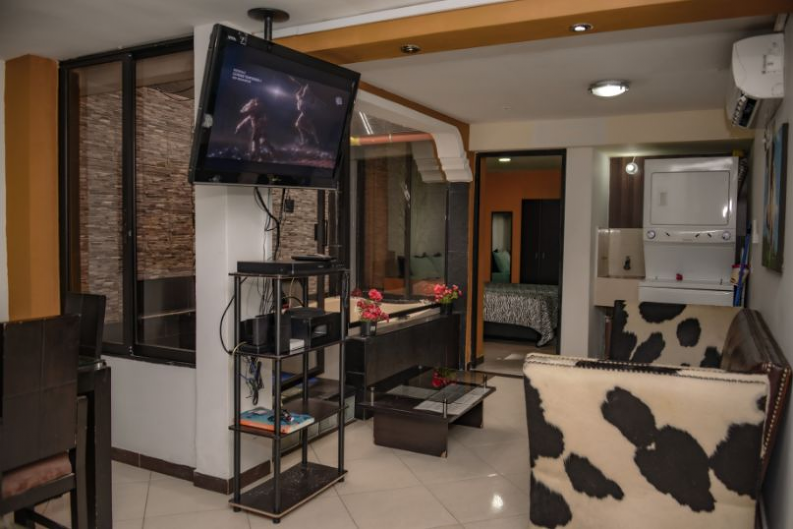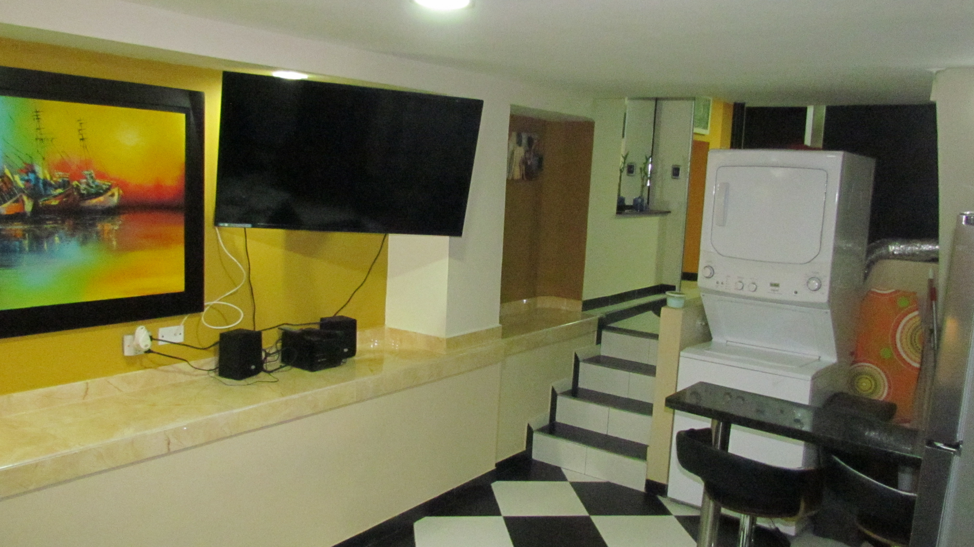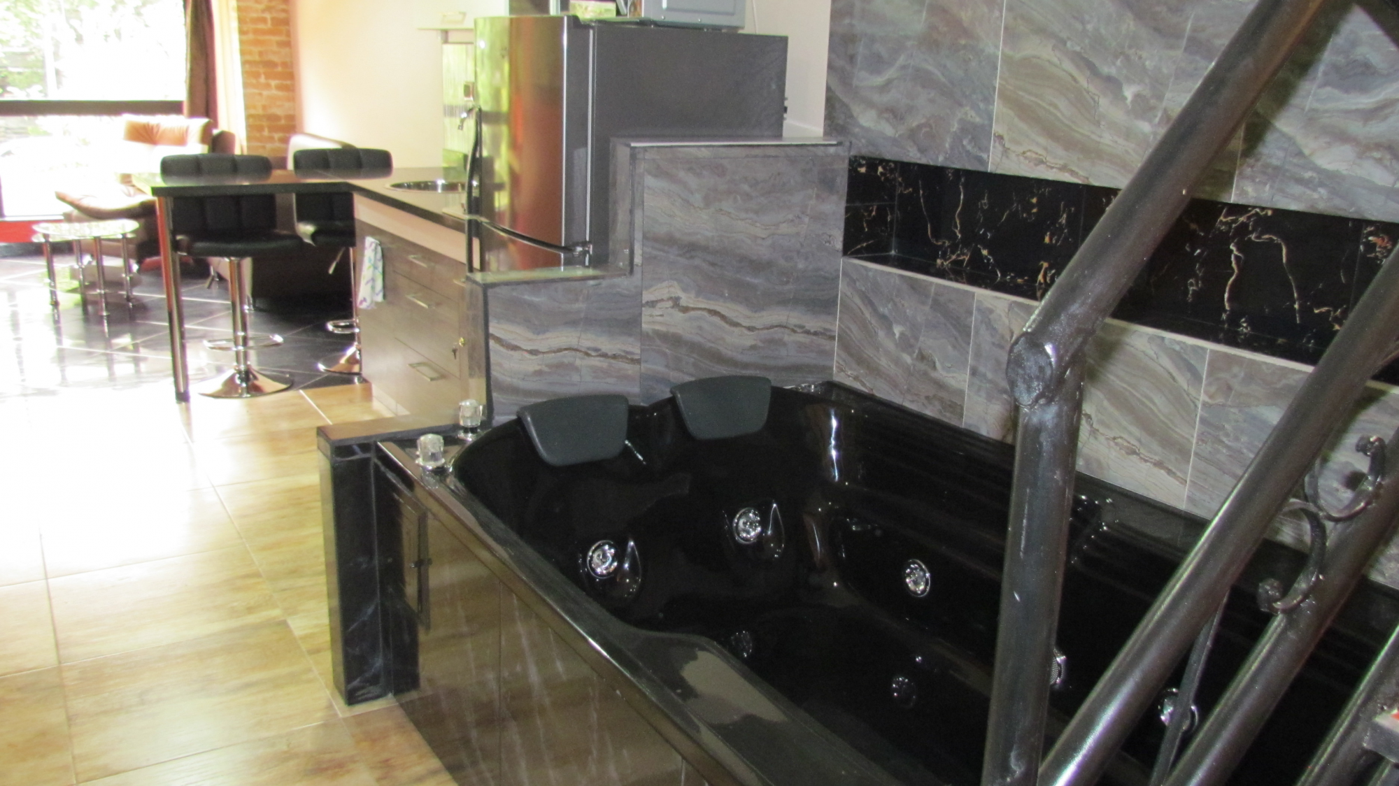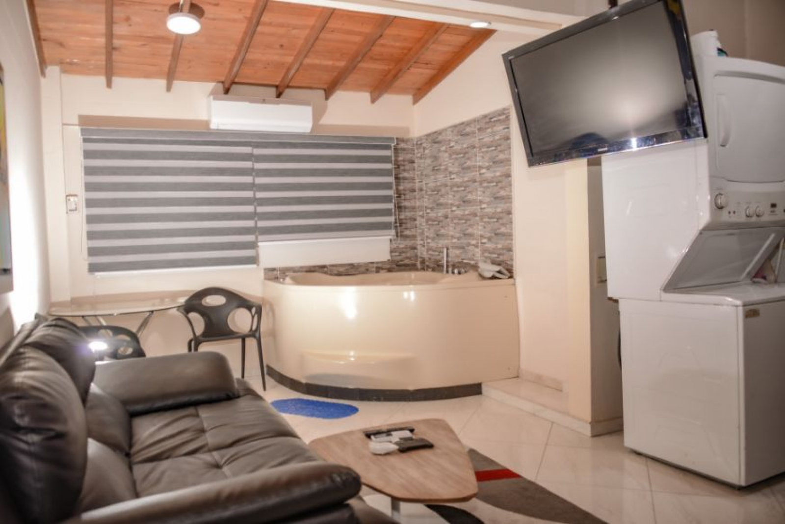 #37 1 Bedroom Hot Tub AC Apt 301 | 1 | 2 | Lleras Area | ![]() Poblado Rentals/Santiago Estrada Lleras Area 1 Bedroom Apartment. This place offers accommodation with biggest bedroom in building, full kitchen, ceiling fan, two flat screens, extra hot water heater added, hot tub in the living room, AC, wifi with two different accounts and wall safe in the bedroom. Lleras is 2 blocks away, all guests are no charge but need ID. Washer and dryer inside the Apartment. |