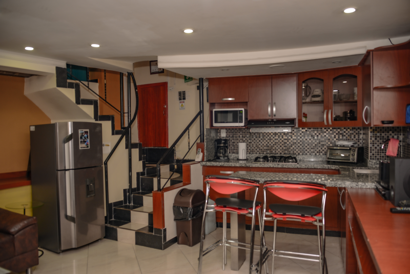 #23 3 Bedroom Calle 8 AC Bedroom Hot Tub | 3 | 6 | Lleras Area | ![]() Poblado Rentals/Santiago Estrada Lleras Area 3 bedroom is 3 blocks from Park Lleras.Every room has its own bathroom plus door opens from hallway as a social bathroom, the place came out incredible with a small hot tub room for everyone to use, balcony and washer dryer, good wifi. The apartment has an interior locked staircase that goes up to another 3 bedroom for large parties. Beds are all of good size, 2 queens and 1 king. The kitchen came out the best with a look that rivals any american homes kitchen. BBQ on small deck and the walk to park lleras is 3 blocks.Close to atms and supermarkets are half a block to the exito express.Questions asked:¿Can I have guests? Yes, no charge (NEED PHOTO ID).¿How far to Lleras? 3 blocks¿Is there an elevator? No |