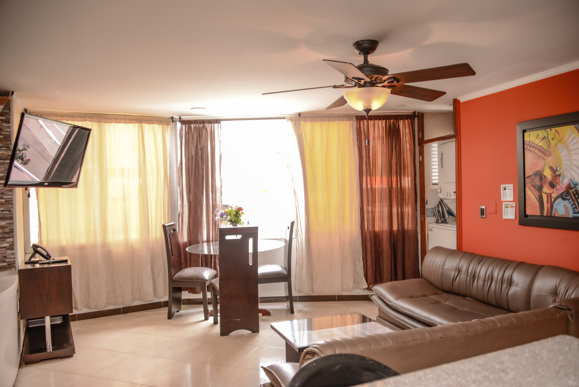 #35 Brownstone 1 Bedrooms | 1 | 1 | 2 | Lleras Area | ![]() Poblado Rentals/Santiago Estrada Lleras Area 1 Bedroom Apartment.This place offers accommodation with a queen bed, view of the Dann Carlton, two AC units, wifi, two flat screen TV's (Android TV, IPTV), a hot tub, washer and dryer. The place is 3 blocks from Lleras, all the bars and clubs are 2 blocks away.Can have guest (Need photo ID). Security downstairs to help you.This aparment is close to supermarkets,ATM,Restaurants and bars. |